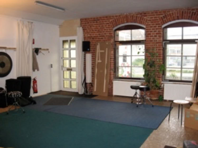 Großer Spiegel auf einer Seite. Bei Bedarf können Instrumente oder eine PA geliehen werden.